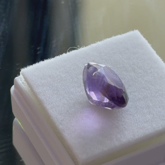 The stone is somewhat included, with natural internal features visible under close inspection. These inclusions are typical of natural quartz and confirm the stone’s natural origin. Despite this, the amethyst still offers pleasing color and size, making it a great option for custom jewelry where presence and affordability are priorities.