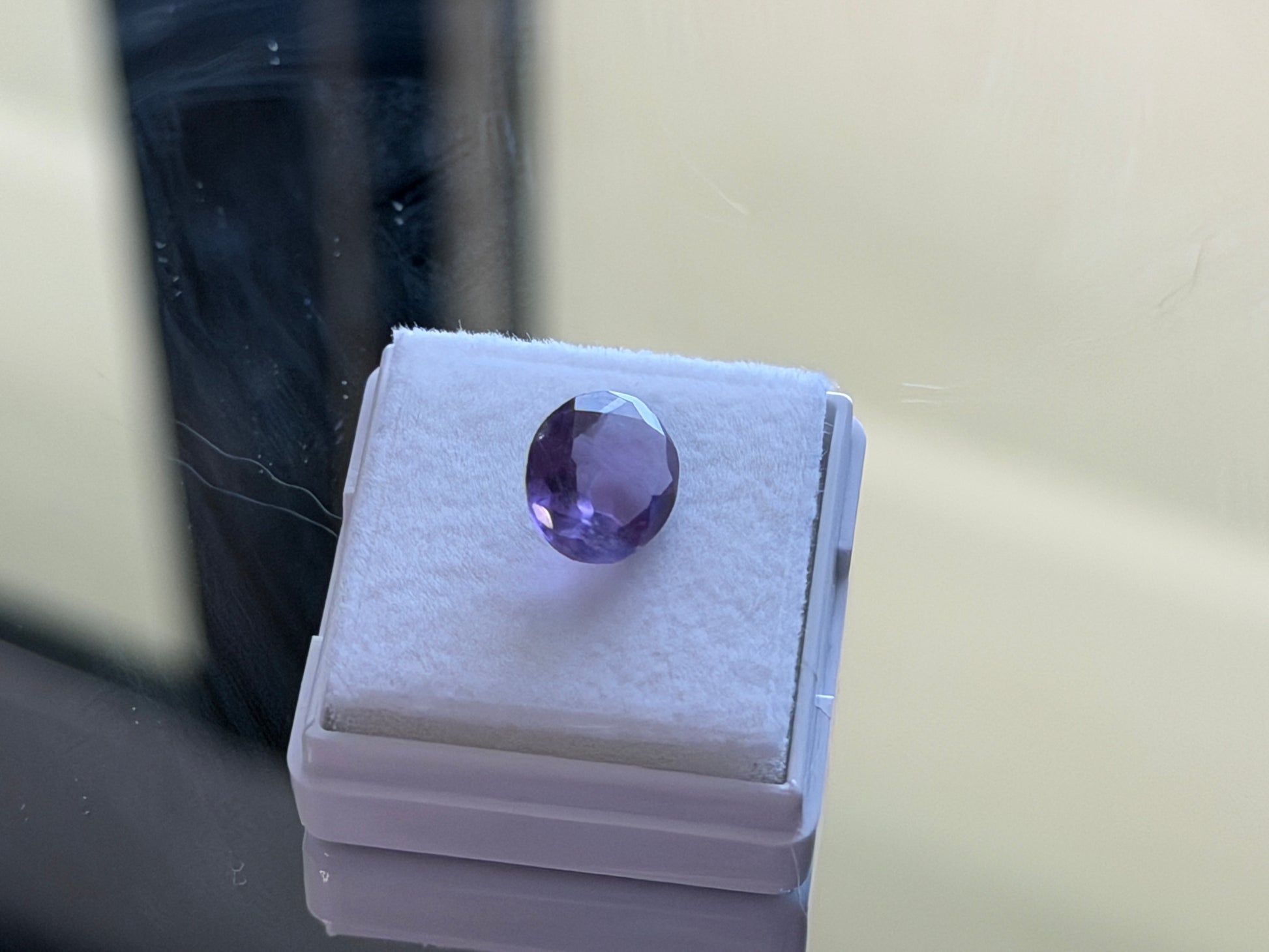 Offered here is a natural amethyst gemstone weighing approximately 2.50 carats, cut as an oval faceted stone measuring about 11 x 9 mm. This stone displays a pleasing purple to violet hue with good transparency and attractive light return across its facets.