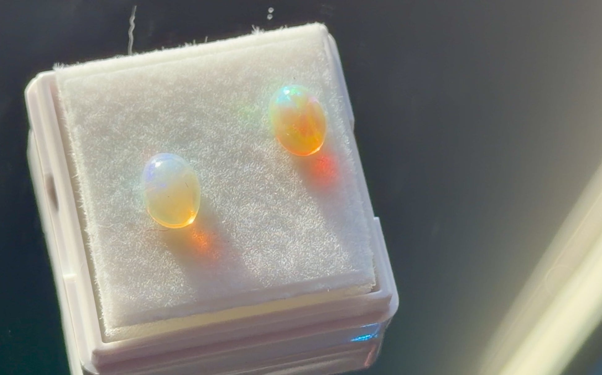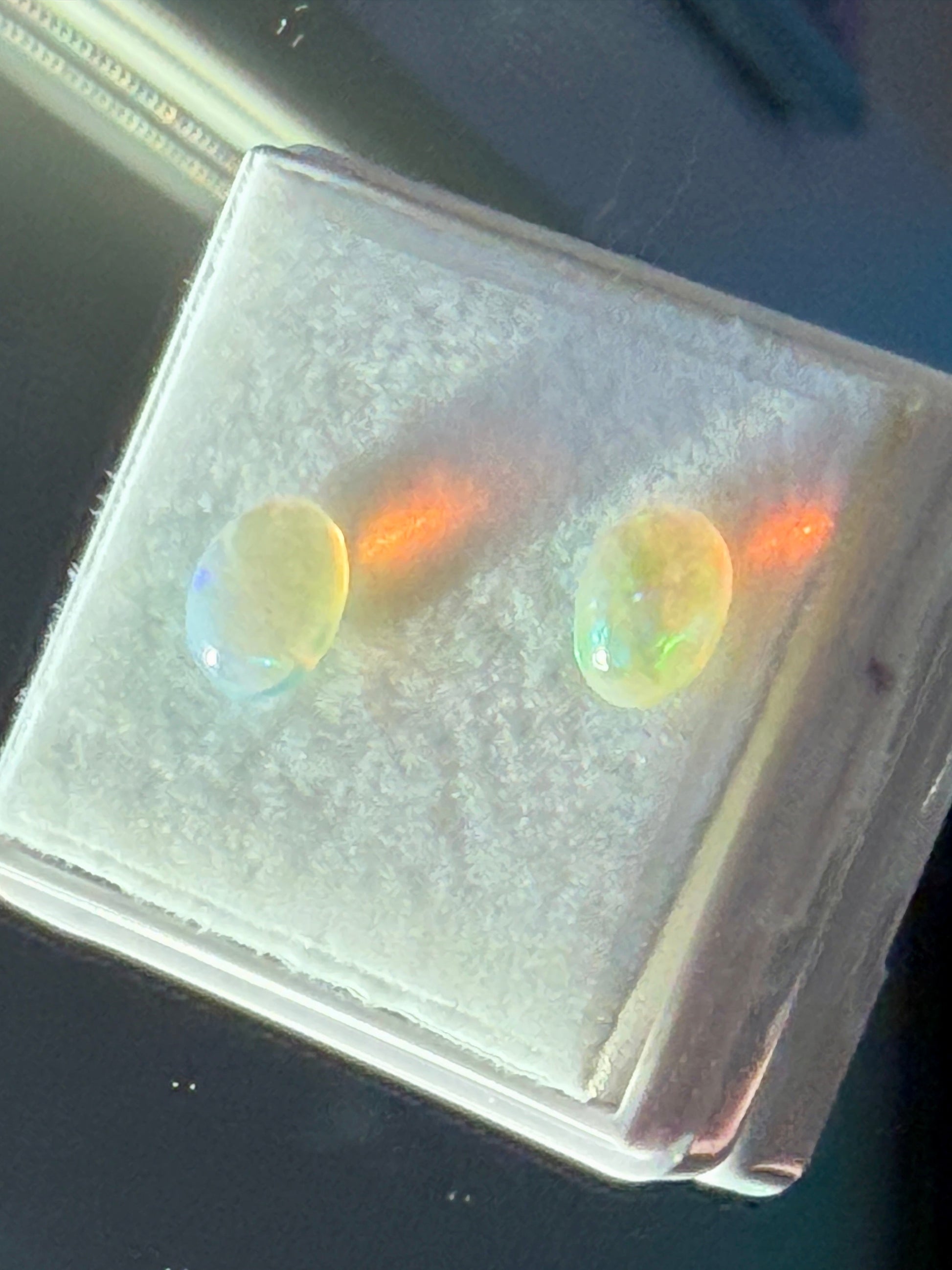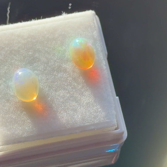Natural Ethiopian Opal Pair 1.ct • Oval Cabochons 7x5mm • Nice Fire